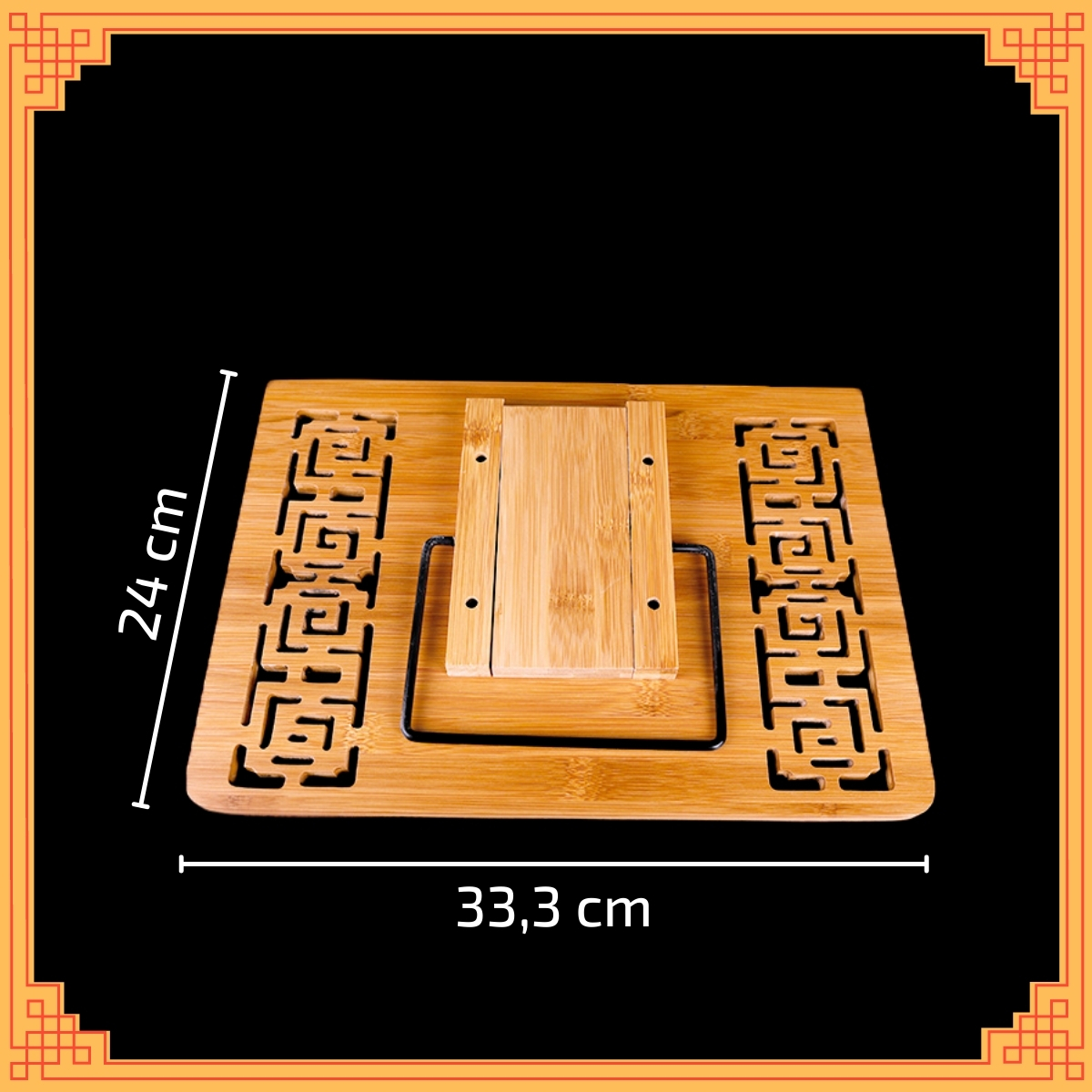 Chất liệu: Gỗ tre Kích thước: 24x33.3cm Trọng lượng: 500 gram Màu: vàng tre Kết cấu của giá đỡ đọc sách, ipad – Giá đỡ đọc kinh: