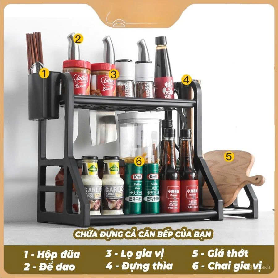 Kệ Để Gia Vị Nhà Bếp 2 Tầng Đa Năng – Gọn Gàng, Tiện Lợi, Tiết Kiệm Không GianMô tả sản phẩm:Kệ để gia vị 2 tầng đa năng là giải pháp tối ưu cho căn bếp gọn gàng và hiện đại. Thiết kế thông minh, nh...