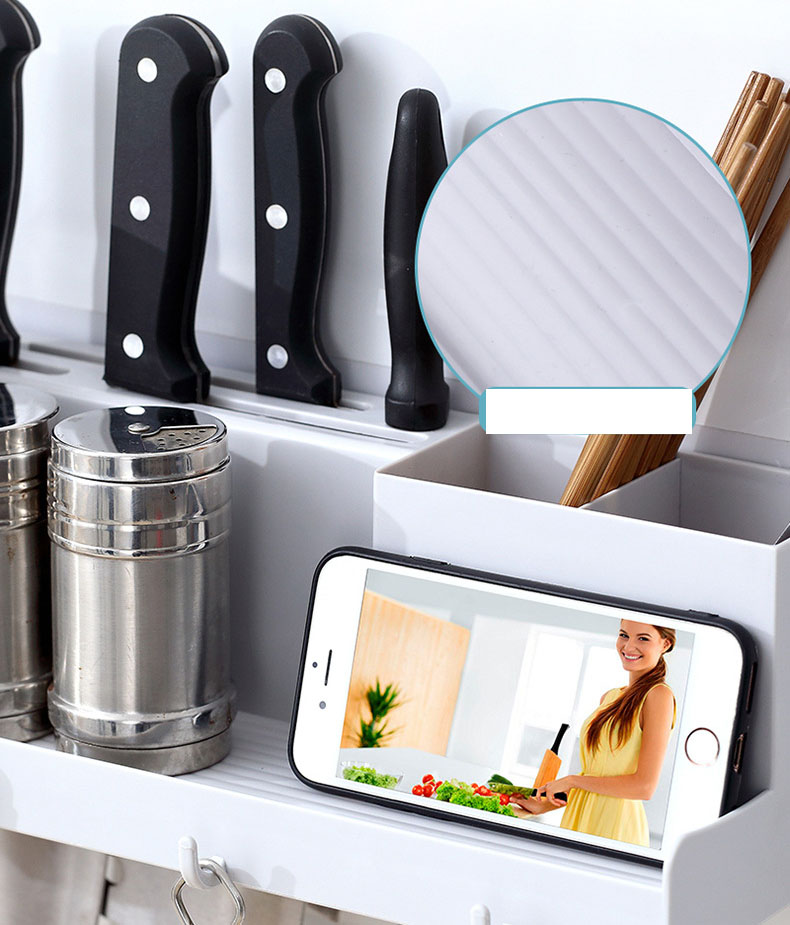 - Kệ đựng gia vị nhà bếp đa năng có thiết kế thông minh, nhỏ gọn, đa năng, tiết kiệm diện tích giúp giải quyết và thay thế toàn bộ các giá đựng gia vị, khe cắm dao, móc treo kéo, thìa, dụng cụ nhà bếp, ống đựng đũa thìa nĩa, dao, gia vị,...