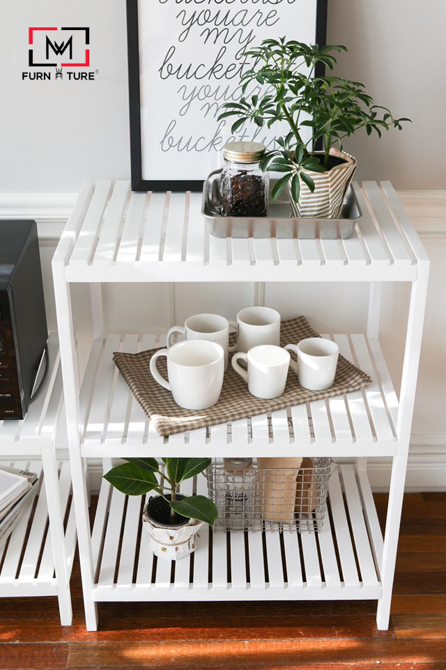 ✨KỆ GỖ ĐỂ LÒ VI SÓNG 3 TẦNG HÀN QUỐC MÀU TRẮNG - OVEN RACK 3F WHITE
