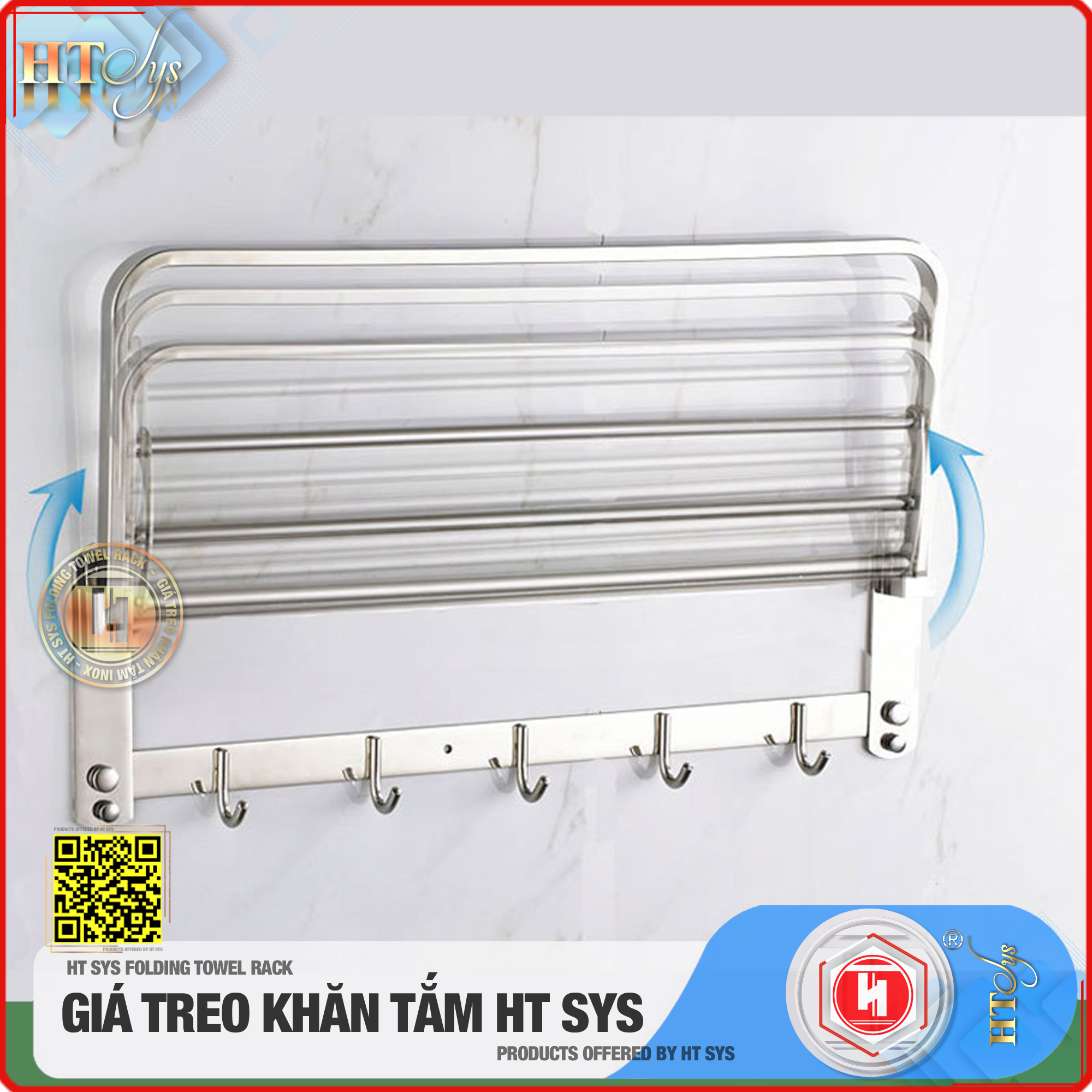 Giá Treo Khăn Tắm Inox 304 HT SYS Cao Cấp VẮT KHĂN TẮM HT SYS - GIÁ TREO KHĂN TẮM INOX 304 ĐA NĂN 2 TẦNG , CÓ MÓC TREO QUẦN ÁO CAO CẤP Kệ nhà tắm inox 304 cao cấp HT SYS - Tích hợp giá treo khăn tắm, vắt khăn tắm, móc treo đồ -Hàng Chính Hãng Giá Treo Khăn Tắm Thông Minh HT SYS - Inox 304 Cao Cấp - Hàng Chính Hãng Giá treo khăn tắm 2 tầng đa năng HT SYS giàn vắt khăn tắm inox htsys Giá treo khăn tắm HT SYS là phụ kiện phòng tắm không thể thiếu được trong mỗi hộ gia đình. Chúng tôi HT SYS xin hân hạnh giới thiệu với các bạn sản phẩm tiện ích Giá treo khăn tắm 2 tầng được sản xuất từ inox 304 cao cấp giúp cho không gian phòng tắm nhà bạn thêm sang trọng. Với đặc tính nhỏ gọn, cơ động, treo được nhiều đồ, "giá treo khăn 2 tầng HT SYS" thực sự là vật dụng cần thiết cho mọi gia đình, đặc biệt là những gia đình có không gian phòng tắm nhỏ, hẹp như ở các khu chung cư hoặc các dạng nhà ống. Giá treo khăn tắm 2 tầng ht sys với các chi tiết được thiết kế hài hòa với nhau, mang đến nhiều hiệu năng chỉ trong một sản phẩm, có móc treo với thiết kế đơn giản, sang trọng. Sản phẩm dùng làm giá treo quần áo, khăn mặt, khăn tắm, giúp tiết kiệm không gian cho phòng tắm luôn gọn gàng, sạch sẽ. . Được làm từ 100% inox 304, bề mặt được mạ thêm một lớp crome sáng bóng, mang lại sự sang trọng cho không gian phòng tắm. Thích hợp với mọi không gian phòng tắm tăng tính hiện đại không gian sống cho gia đình. Kệ nhà tắm ht sys được thiết kế cực linh hoạt giúp tiết kiệm tối đa cho không gian phòng tắm của bạn. Khi không có nhu cầu sử dụng, bạn có thể gấp kệ gập sát tường. Với thiết kế thông minh và linh hoạt, kệ treo khăn tắm inox đa chức năng sẽ giúp bạn để được nhiều đồ hơn và tận dụng tối đa không gian của phòng tắm. Đặc điểm Ưu Việt của sản phẩm:
