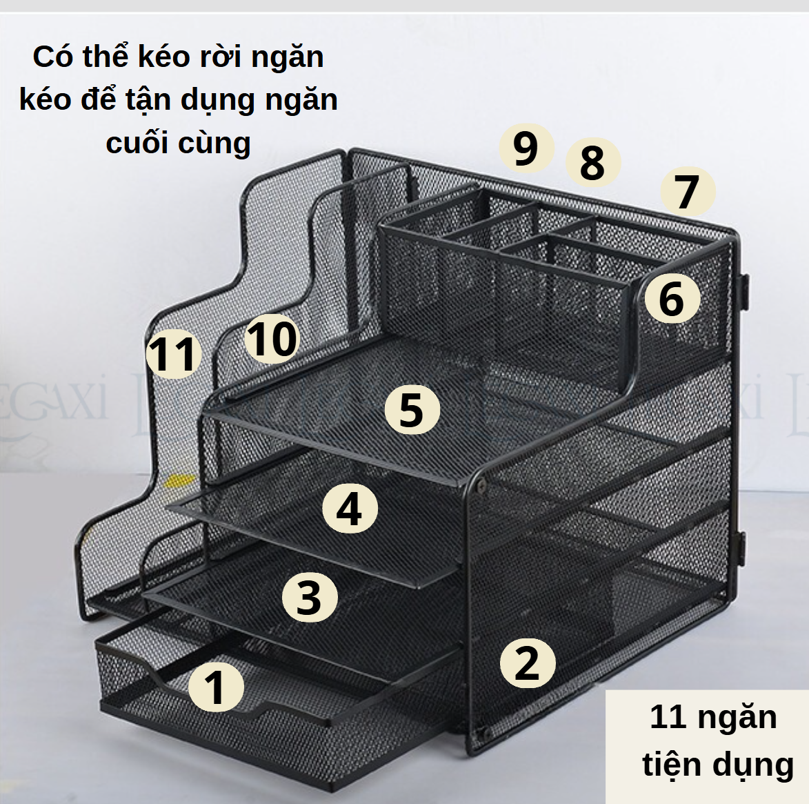 TÍNH NĂNG SẢN PHẨM: ️Giỏ đựng văn phòng được ghép bởi 6 ngăn chứa hình chữ nhật có các kích thước khác nhau, hình dáng đơn giản đem lại không gian văn phòng trở nên
