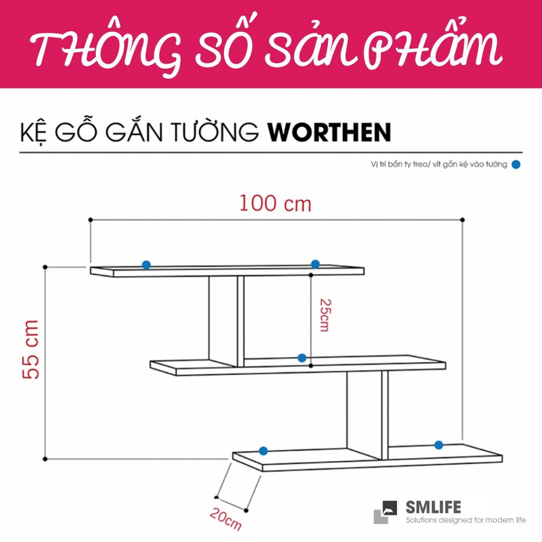 Mang đậm phong cách nội thất đơn giản, kệ gỗ trang trí gắn tường Worthen là một sự bổ sung hoàn hảo cho căn hộ hay văn phòng của bạn. Kệ gỗ Worthen được thiết kế theo phong cách đơn giản, hiện đại giúp bạn thoải mái trang trí sách hay các vật dụng trang trí an toàn. Sử dụng vật liệu ván ép công nghiệp MDF chống ẩm phủ Melamine cao cấp giúp kệ gỗ trang trí SMLIFE có độ bền cao, chống trầy và chống ẩm rất tốt. Bạn có thể tự lắp đặt sản phẩm dễ dàng với các phụ kiện và hướng dẫn đi kèm.