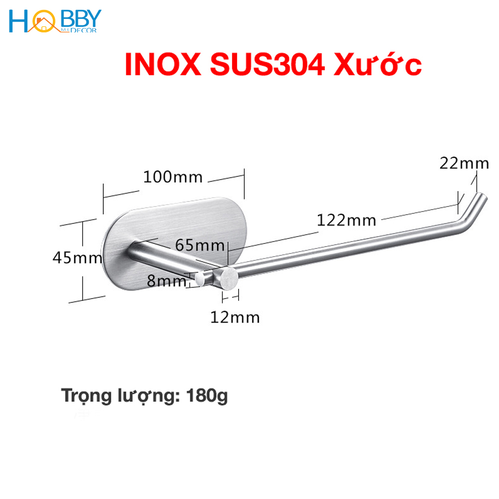Móc Inox 304 treo cuộn giấy vệ sinh dài dán tường - kèm miếng dán - HOBBY G13