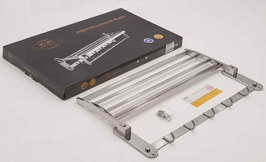 Bảo hành : 2 năm CHẤT LIỆU Kệ được làm từ Inox SUS 304 nguyên chất, mạ Crome sáng bóng không han rỉ, bền chắc. ( Eurolife cam kết nếu sản phẩm không đúng chất liệu Inox SUS 304, công ty sẽ hoàn 500% tiền theo giá trị sản phẩm) SẢN PHẨM LINH HOẠT Kệ được thiết kế đang năng linh động với 1 máng để khăn, 1 máng treo phơi khăn tắm và 5 móc treo đồ, thuận tiên khi sử dụng       Kệ có thể gấp gọn để tiết kiệm không gian phòng tắm khi không sử dụng ! Kệ được thiết kế 1 ngăn phía trên để khăn khô hay quần áo khi tắm gội ! Thanh phơi khăn tắm tiện dụng, với khớp xoay có thể gấp gọn Thành kệ được làm với Inox dày, bo cong các góc, an toàn khi sử dụng Bát chịu lực được dập nguyên miếng, chịu lực cao KHỚP XOAY Khớp xoay của kệ được đặt trong một trục nhựa, giúp việc nâng hạ kệ khăn nhẹ nhàng thuận tiện hơn, đồng thời không gây tiếng kêu khi sử dụng Kệ được tích hợp một móc treo 4 chấu bằng Inox bên dưới, giúp kệ có thể sử dụng được nhiều hơn cho việc treo móc quần áo và đồ dùng Phụ kiện đi kèm là bộ ốc vít, lắp chụp ốc vít, giúp sẩn phẩm thẩm mỹ hơn khi lắp đặt Kệ có sức chứa lớn, để nhiều đồ hơn, giúp phòng tắm gọn gàng sang trọng hơn ĐÓNG GÓI Sản phẩm đươc đóng gói hoàn chỉnh trong túi vải và vỏ hộp của Eurolife. Sản phẩm chất lượng cao, mang đến sự sang trọng và đẳng cấp cho phòng tắm nhà bạn. CHẤT LƯỢNG HÀNG ĐẦU Thương hiệu Eurolife Việt Nam là một thương hiệu uy tín hàng đầu trên thị trường Việt Nam với 12 năm kinh nghiệm Các sản phẩm Eurolife đạt nhiều chứng chỉ uy tín trong nước như :