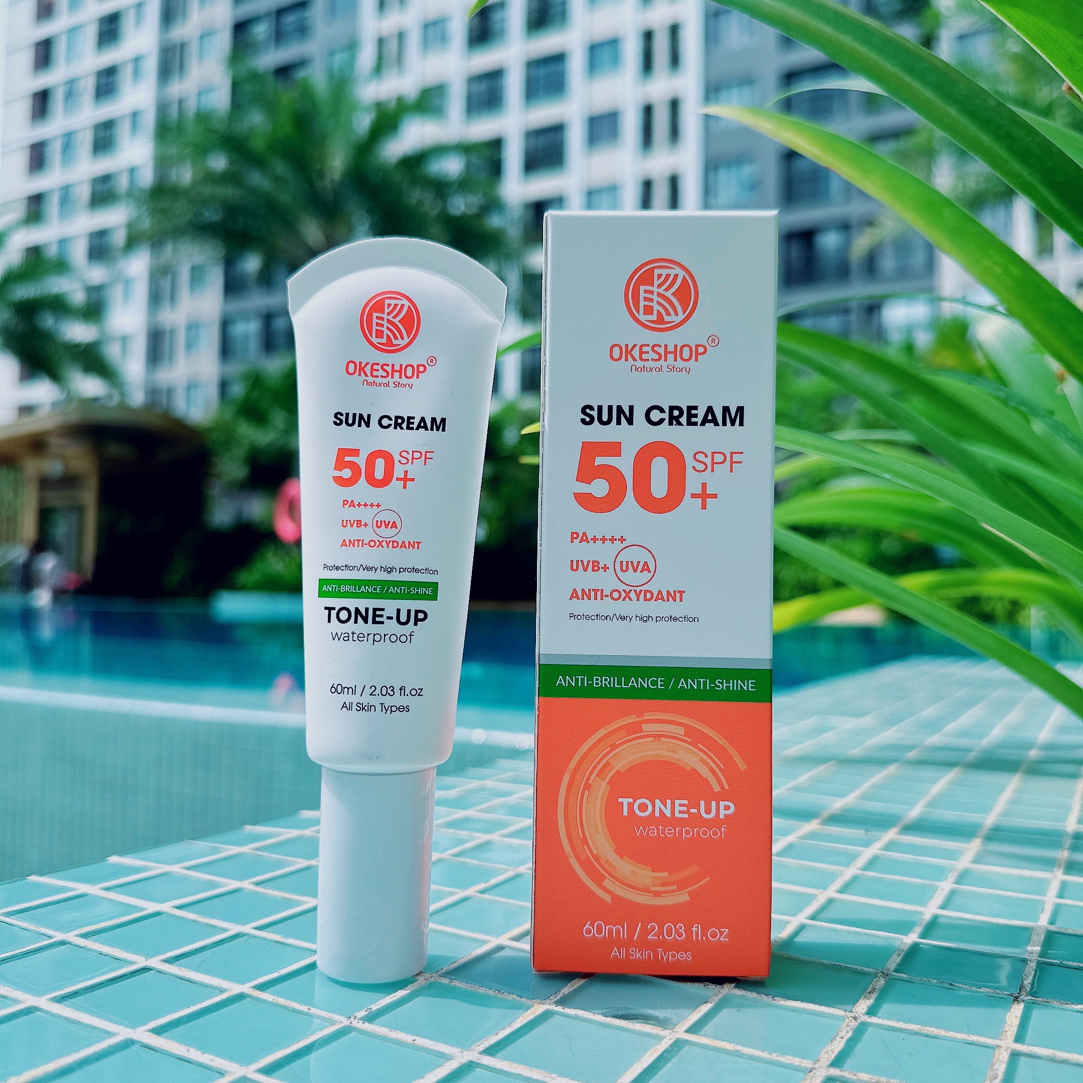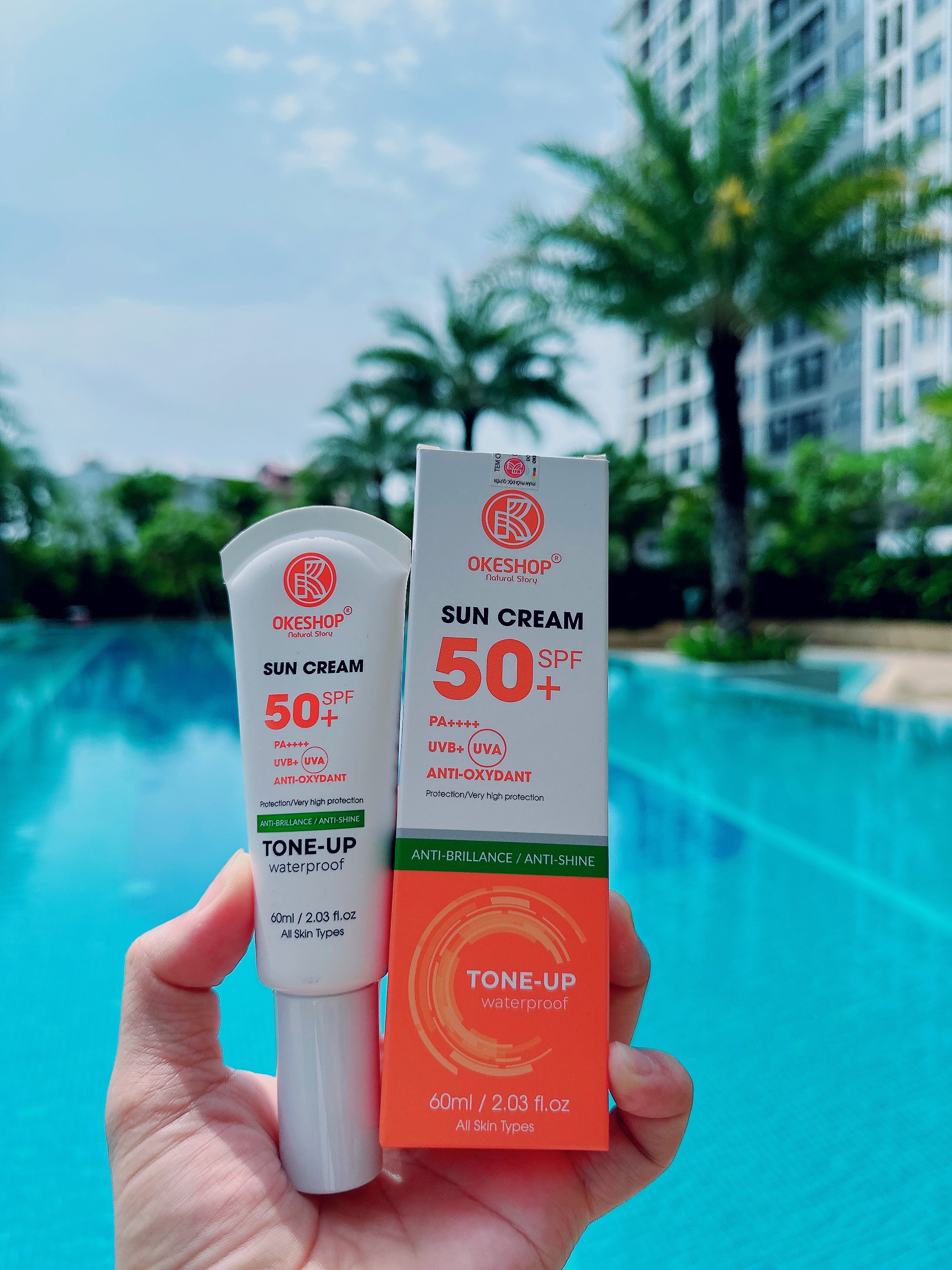 ✨Kem Chống Nắng OKESHOP 60ml SPF 50+ PA++++ Anti-oxydant Tone - Up - Bảo Vệ Da Tuyệt Đối - Anti-Brillance / Anti-shine
