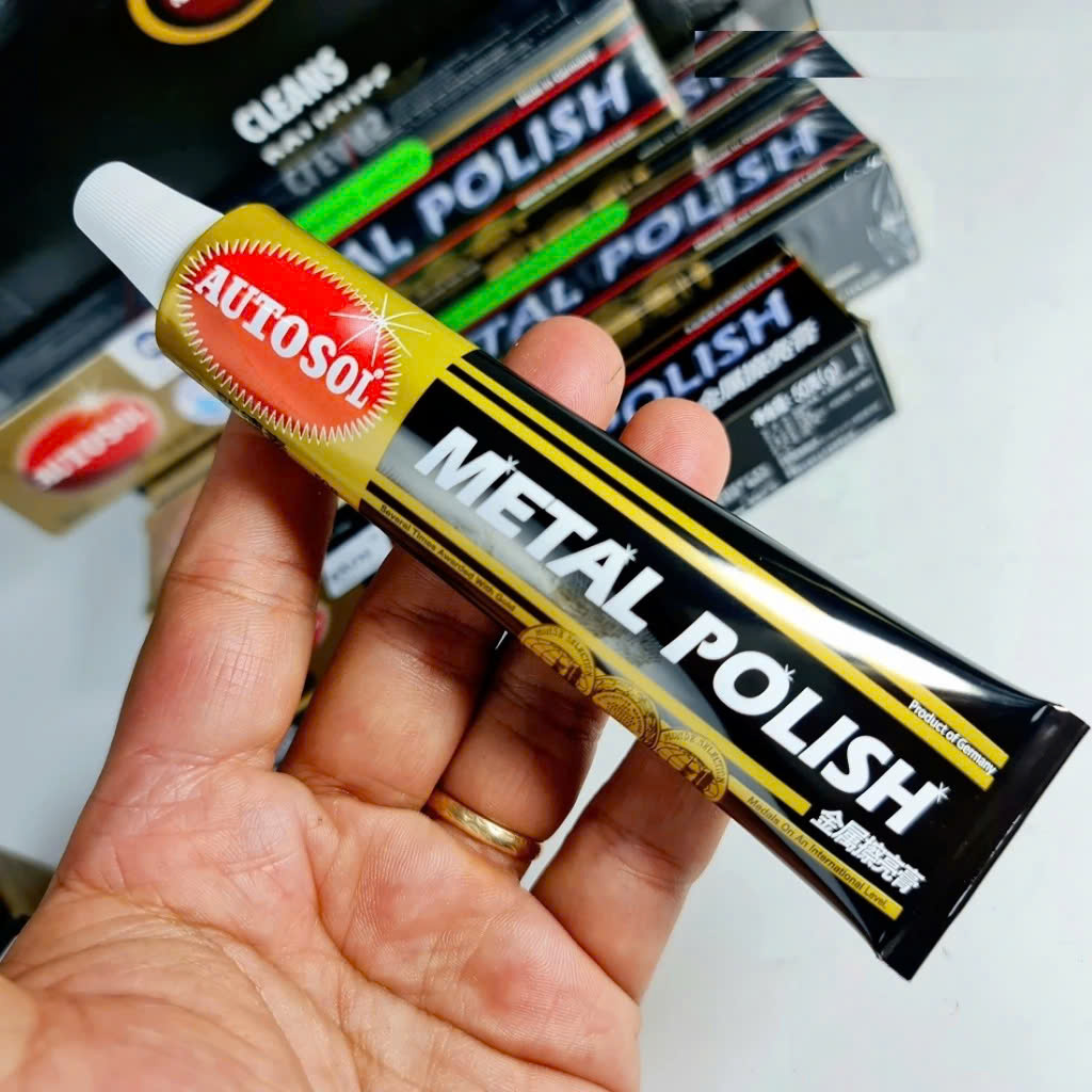 Mua tại TiktokKem đánh bóng kim loại Autosol là sản phẩm chuyên dụng giúp làm sạch và làm sáng bóng inox, nhôm, đồng, crom... nhanh chóng và hiệu quả. Đặc biệt phù hợp cho các chi tiết kim loại trên xe máy, ô tô, xe cổ, đồ gia dụng hoặc vật dụng kim loại trang trí. Với công thức đặc biệt từ Đức, Autosol không chỉ làm bóng mà còn bảo vệ bề mặt khỏi oxy hóa, hoen ố và gỉ sét lâu dài. Ưu điểm nổi bật: