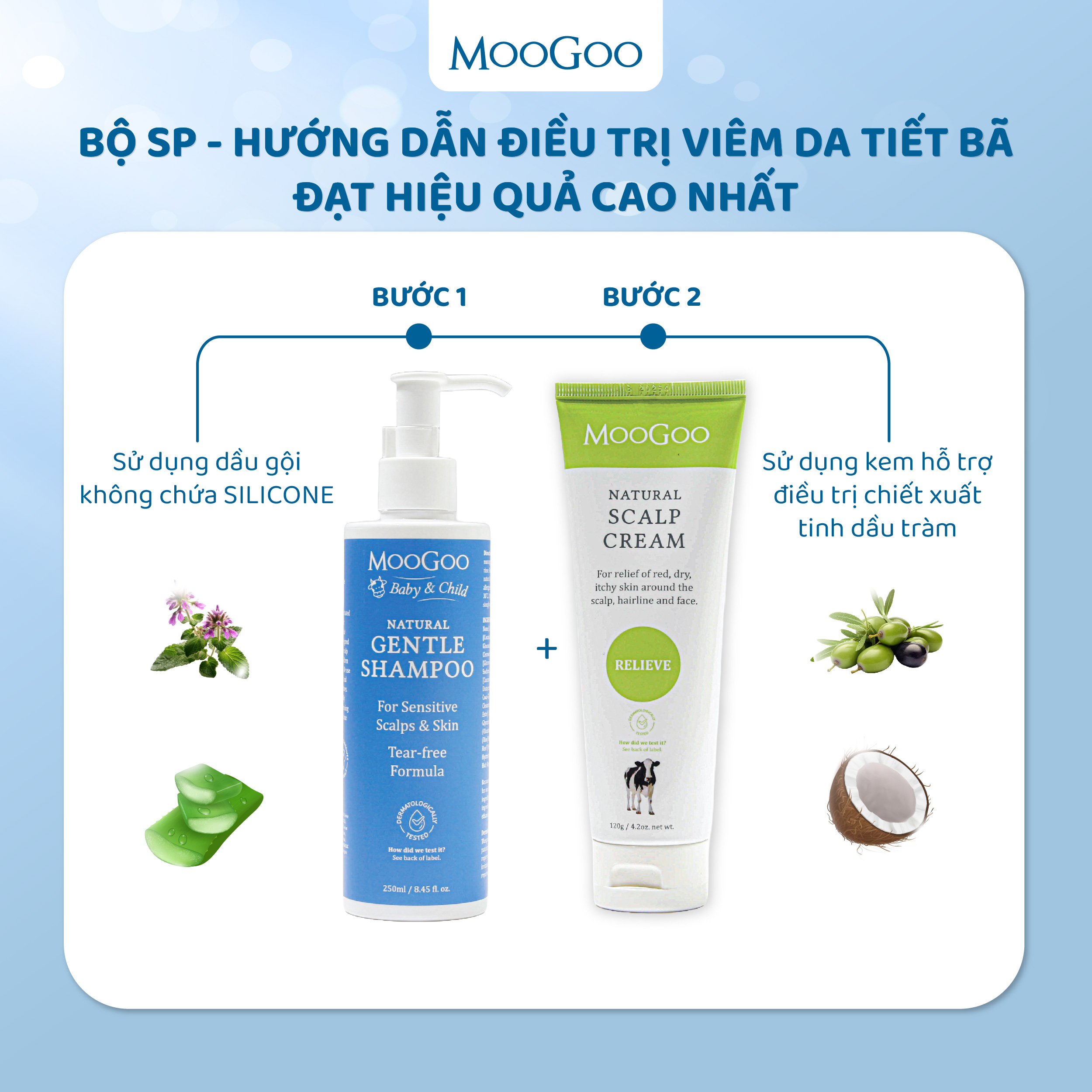 Kem dưỡng ẩm giữ ấm, hỗ trợ điều trị viêm da đầu tiết bã MooGoo Scalp Cream 120g là một sản phẩm dưỡng ẩm tự nhiên nhưng đồng thời được bổ sung các tác dụng chính giúp làm dịu, cải thiện tình trạng viêm da tiết bã nhờn và trả lại làn da khỏe mạnh ở các khu vực như vùng da đầu, chân tóc, cổ , cổ tay. cổ chân hoặc vùng da xung quanh mũi và miệng . Kem trị viêm da tiết bã MooGoo cho mọi lứa tuổi và kể cả trẻ sơ sinh, viêm da cơ địa