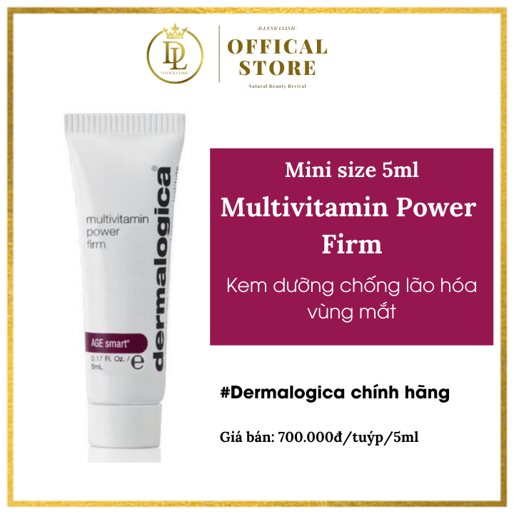 Mua tại TiktokKem dưỡng chống lão hóa vùng mắt Dermalogica Multivitamin Power Firm 15ml Multivitamin Power Firm giúp chỉnh sửa các dấu hiệu của lão hóa sớm với hỗn hợp MultiVitamin. Gia tăng tính đàn hồi và độ săn chắc của da bằng việc kích thích sự tổng hợp collagen và đẩy mạnh sự liên kết giữa các tế bào. Quét sạch sự xâm nhập của các gốc tự do giúp bảo vệ da khỏi những tác động của môi trường bên ngoài. Bảo vệ chống lại sự mất độ ẩm, giảm thiểu những vết chân chim do thiếu nước. THÔNG TIN SẢN PHẨM