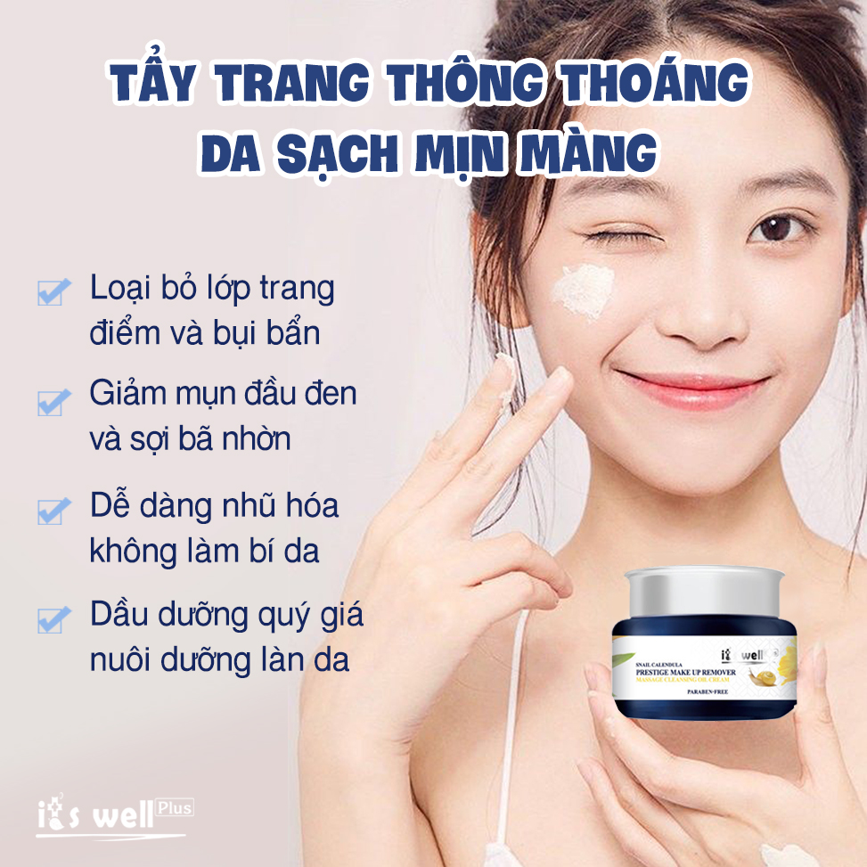 - Kem Tẩy Trang Mát Xa Dưỡng Sáng Da It's Well Plus Snail Calendula Prestige Make Up Remover Cleansing Oil Cream CPOC (100ml) - Đây là sự kết hợp hoàn hảo giữa dạng dầu và