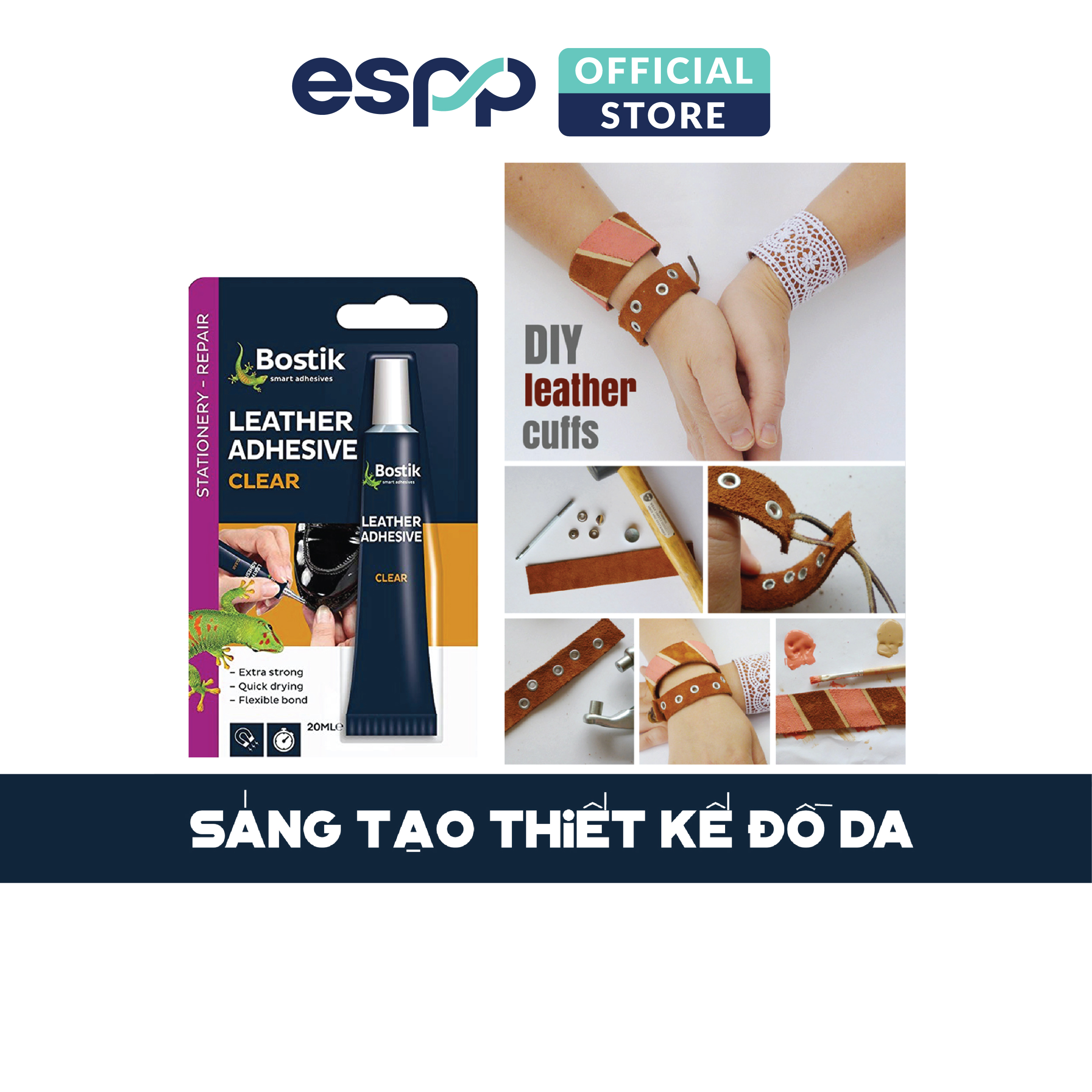 Mô tả Hồ khô chai thương hiệu BOSTIK cao cấp Trọng lượng 35 gram/ chai 1 Set 5 màu (có bán lẻ từng chai) Công dụng Dán tạo hoa giả, sản phẩm nghệ thuật giấy