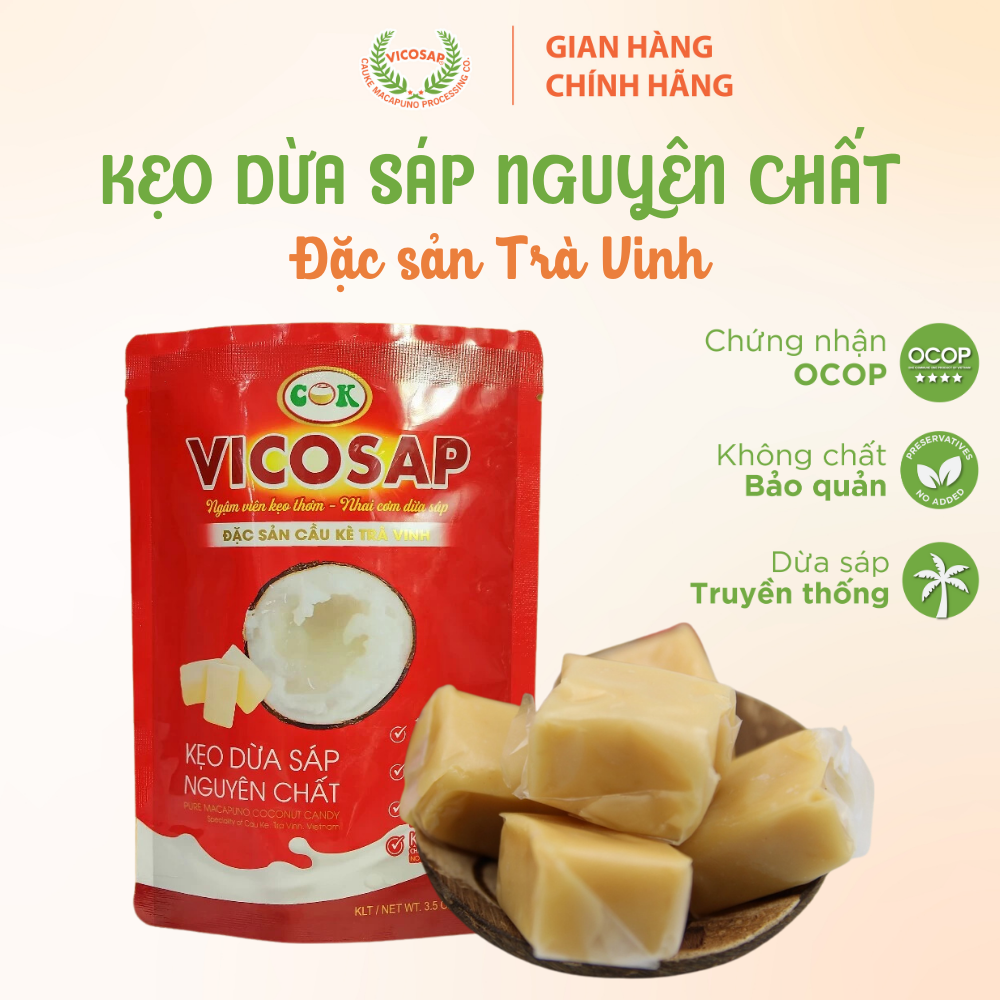 - Khám phá hương vị độc đáo của Kẹo Dừa Sáp VICOSAP - sản phẩm kẹo dừa sáp nguyên chất 100g, được chế biến từ những nguyên liệu tự nhiên, mang đến hương vị thơm ngon và tinh khiết. Đặc biệt, kẹo dừa sáp VICOSAP không chứa bất kỳ chất bảo quản nào, đảm bảo an toàn cho sức khỏe của bạn và gia đình. Thích hợp để làm quà tặng hoặc sử dụng hàng ngày, sản phẩm này đem lại trải nghiệm ẩm thực không thể quên.