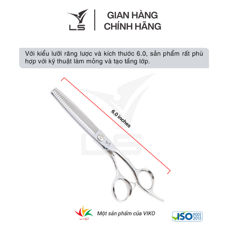 Với kiểu lưỡi thẳng và kích thước 6.0, sản phẩm rất phù hợp với các đường cắt thẳng (blunt cut). Dòng kéo cắt tóc cao cấp VLS luôn đảm bảo chất lượng (cắt không chạy
