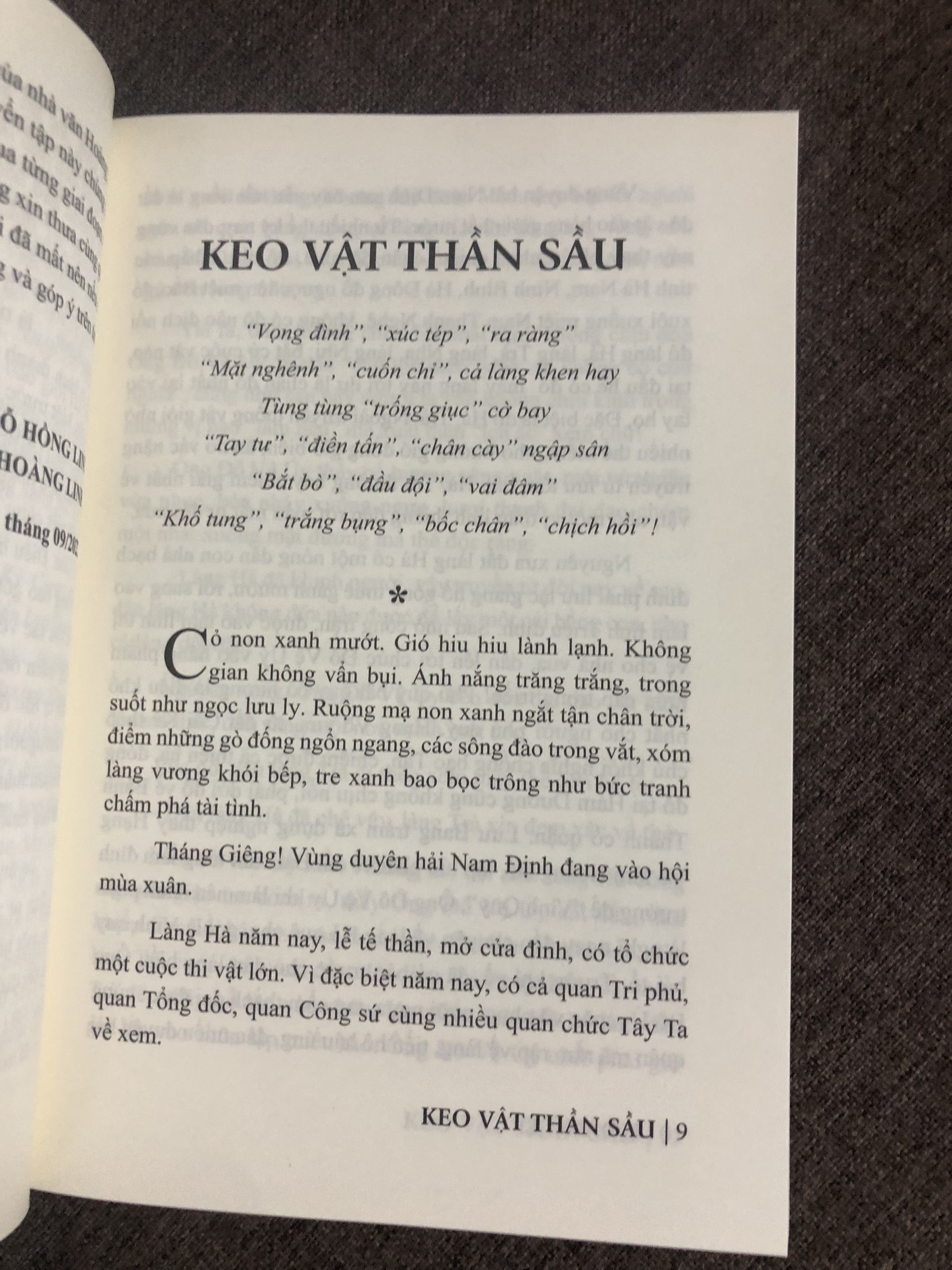 1_ Keo Vật Thần Sầu : truyện về tục lệ đấu vật ngày Xuân ở miền Bắc và truyền tích ly kỳ của một địa phương nổi tiếng giỏi vật. Nhà văn đã tập hợp những thuật ngữ đấu vật thành một bài văn vần khá đầy đủ: