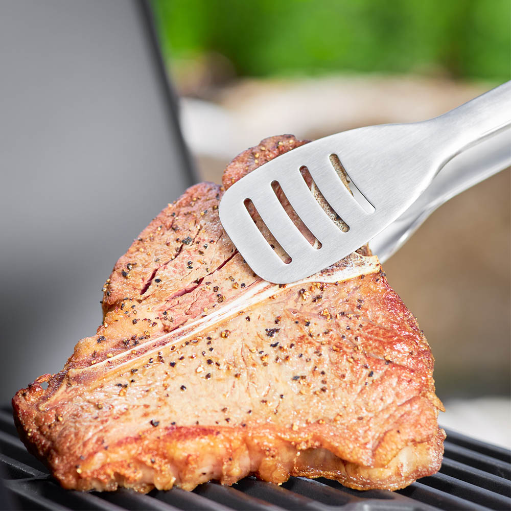 Thương hiệu Roesle nổi tiếng đã mang đến một sản phẩm kẹp nướng cao cấp, đảm bảo an toàn cho sức khỏe và độ bền cực cao. Được làm từ thép không gỉ 18/10 chất lượng, kẹp nướng này không chỉ đáng tin cậy mà còn có khả năng chịu được môi trường nhiệt độ cao và thời gian sử dụng lâu dài. Bề mặt xoay lớn của sản phẩm này cho phép bạn lật thịt, cá và rau củ dễ dàng và chính xác, giúp bạn kiểm soát quá trình nướng một cách chính xác và thuận tiện.