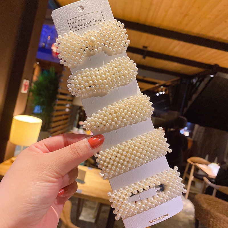 Set 5 kẹp tóc đính ngọc trai cực sang trọng kiểu vintage