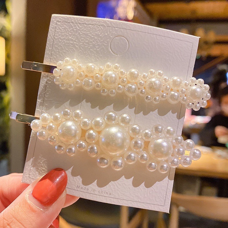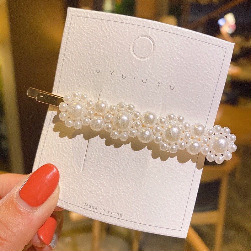 ✨Kẹp Tóc Hợp Kim Hình Học Đính Ngọc Trai Phong Cách Hàn Quốc Cho Nữ