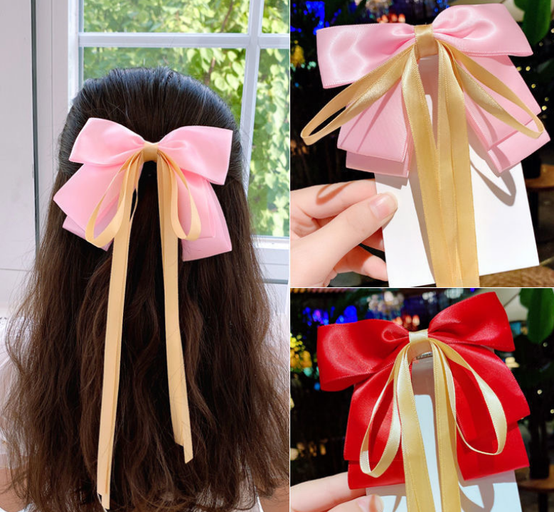 Kẹp Tóc Nơ Ruy Băng Lớn Phong Cách Hàn Quốc Thanh Lịch Cho Nữ