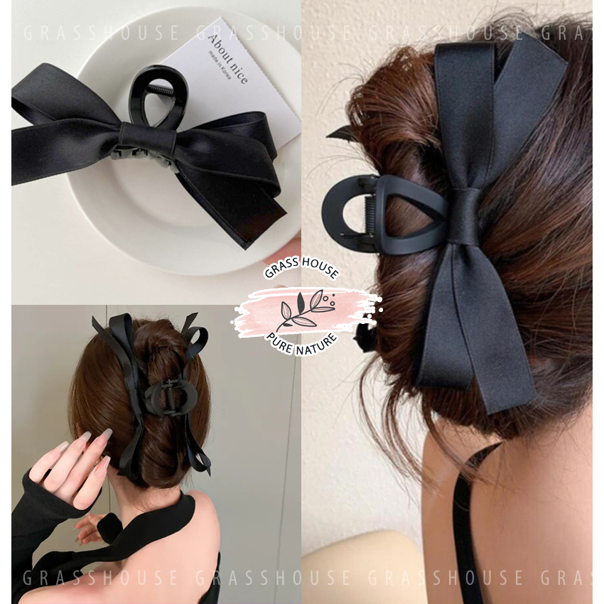 KẸP TÓC CÀNG CUA RĂNG CƯA HÌNH NƠ CHÉO ĐEN BÓNG BẢN NHỎ SANG CHẢNH CHO NÀNG THEO PHONG CÁCH HÀN QUỐC Vật Chất: Vải Satin bóng + Acrylic , Vải Nhung Mờ+ Acrylic Kích