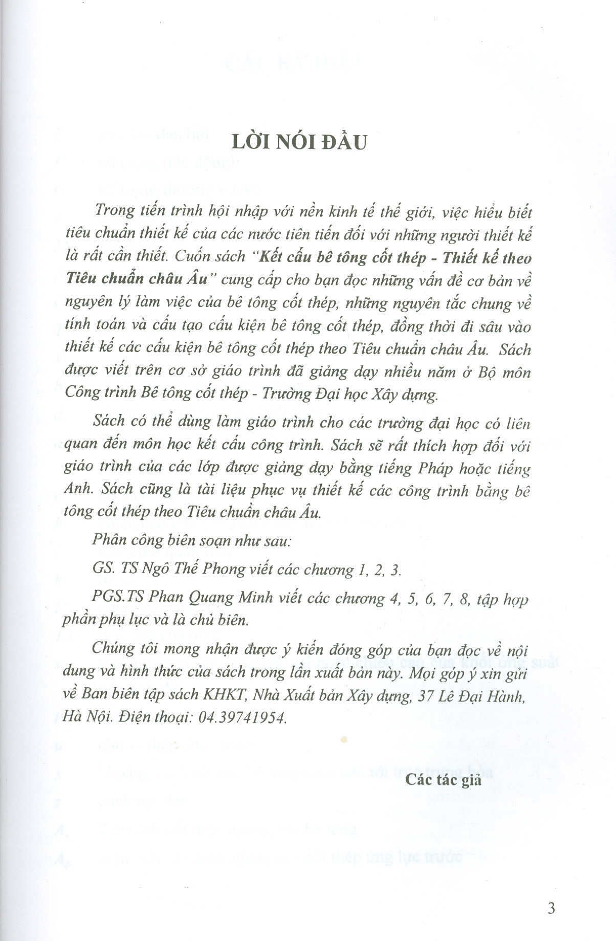 Cuốn sách Kết Cấu Bê Tông Cốt Thép Thiết Kế Theo Tiêu Chuẩn Châu Âu cung cấp cho bạn đọc những vấn đề cơ bản về nguyên lý làm việc của bê tông cốt thép, những nguyên tắc chung về tính toán và cấu tạo cấu kiện bê tông cốt thép, đồng thời đi sâu vào thiết kế các cấu kiện bê tông cốt thép theo Tiêu chuẩn châu Âu. Sách được viết trên cơ sở giáo trình đã giảng dạy nhiều năm ở Bộ môn Công trình Bê tông cốt thép - Trường Đại học Xây dựng. Chương 1. Khái niệm chung
