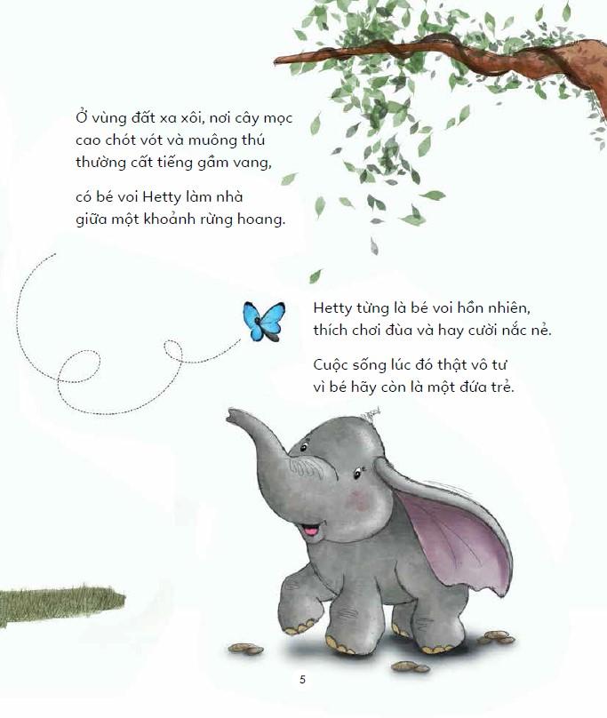 Bé sẽ được lắng nghe câu chuyện của Hetty hồn nhiên, tốt bụng qua câu chuyện “Voi con học leo cây”. Voi con Hetty từng tự ti vì m.ình không thể leo cây nhưng rồi bé nhận ra “Giá trị của voi không nhất thiết phải được đánh giá qua tài leo cây!” mà còn qua nhiều tài năng đặc biệt khác.