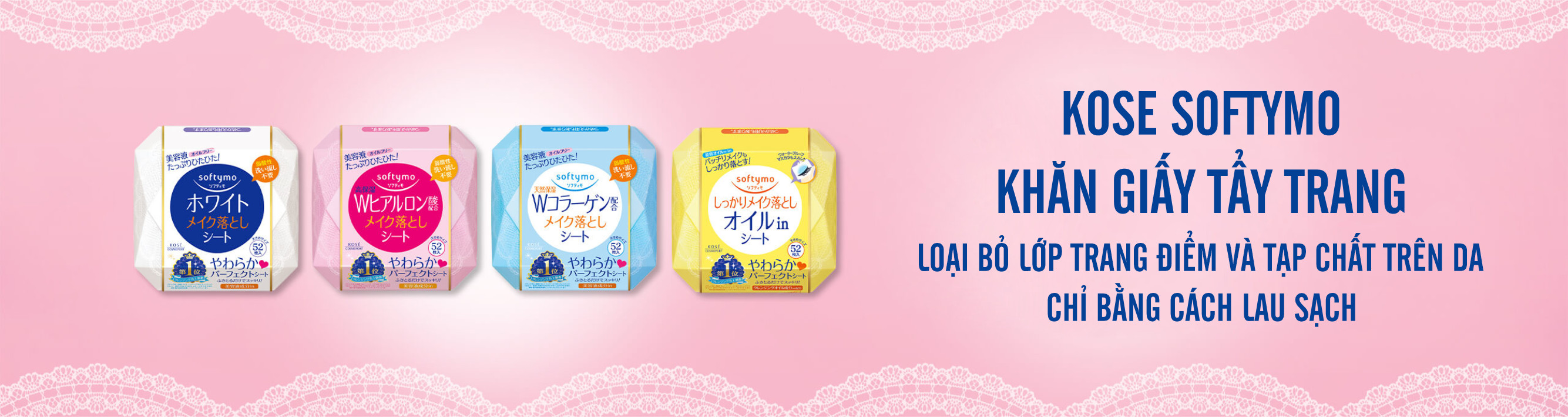 Khăn Giấy Tẩy Trang Dưỡng Ẩm Kosé Softymo Axit Hyaluronic Cleansing Sheet H 52 miếng Xuất Xứ: Nhật Bản Quy Cách: 52 miếng Sản phẩm được tẩm sẵn dung dịch tẩy trang trong chất liệu