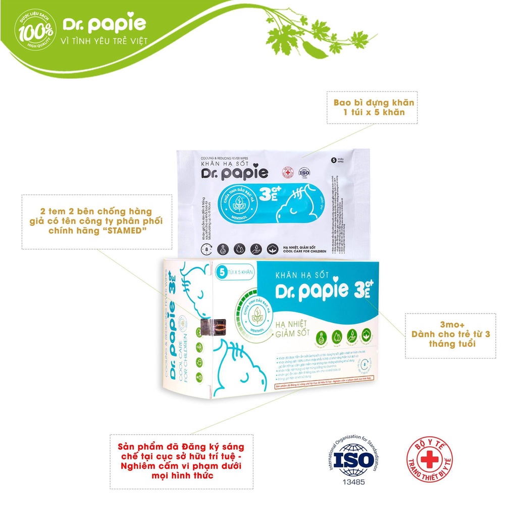 Khăn Lau Hạ Sốt 0+ 3+ Dr Papie Cho Bé Hạ Nhiệt Giảm Sốt Ngăn Ngừa Co Giật - Dr. Papie