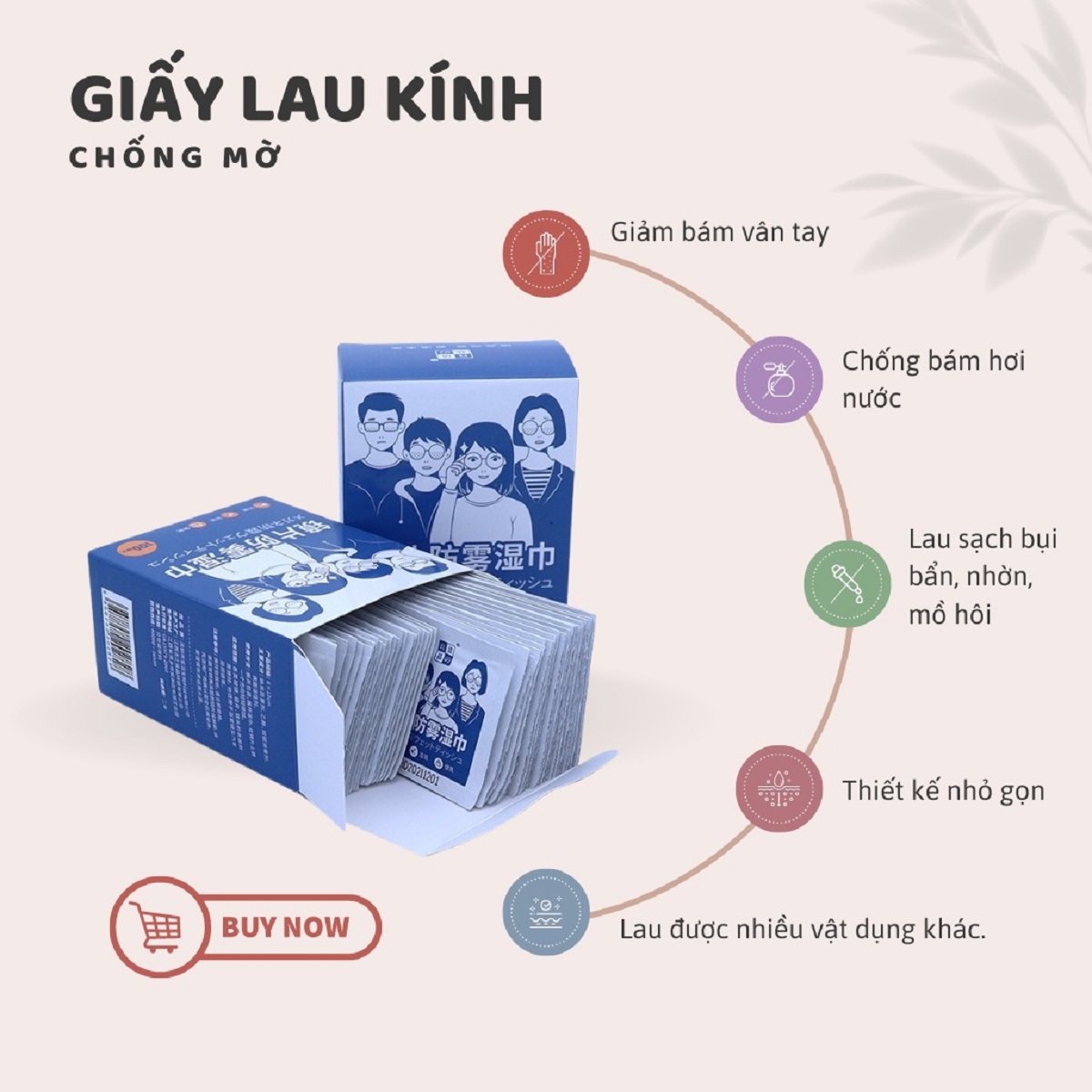 Mỗi miếng giấy có tẩm dung dịch cồn lau sạch mắt kính sáng bóng, trong veo, bảo vệ tầm nhìn của mắt .