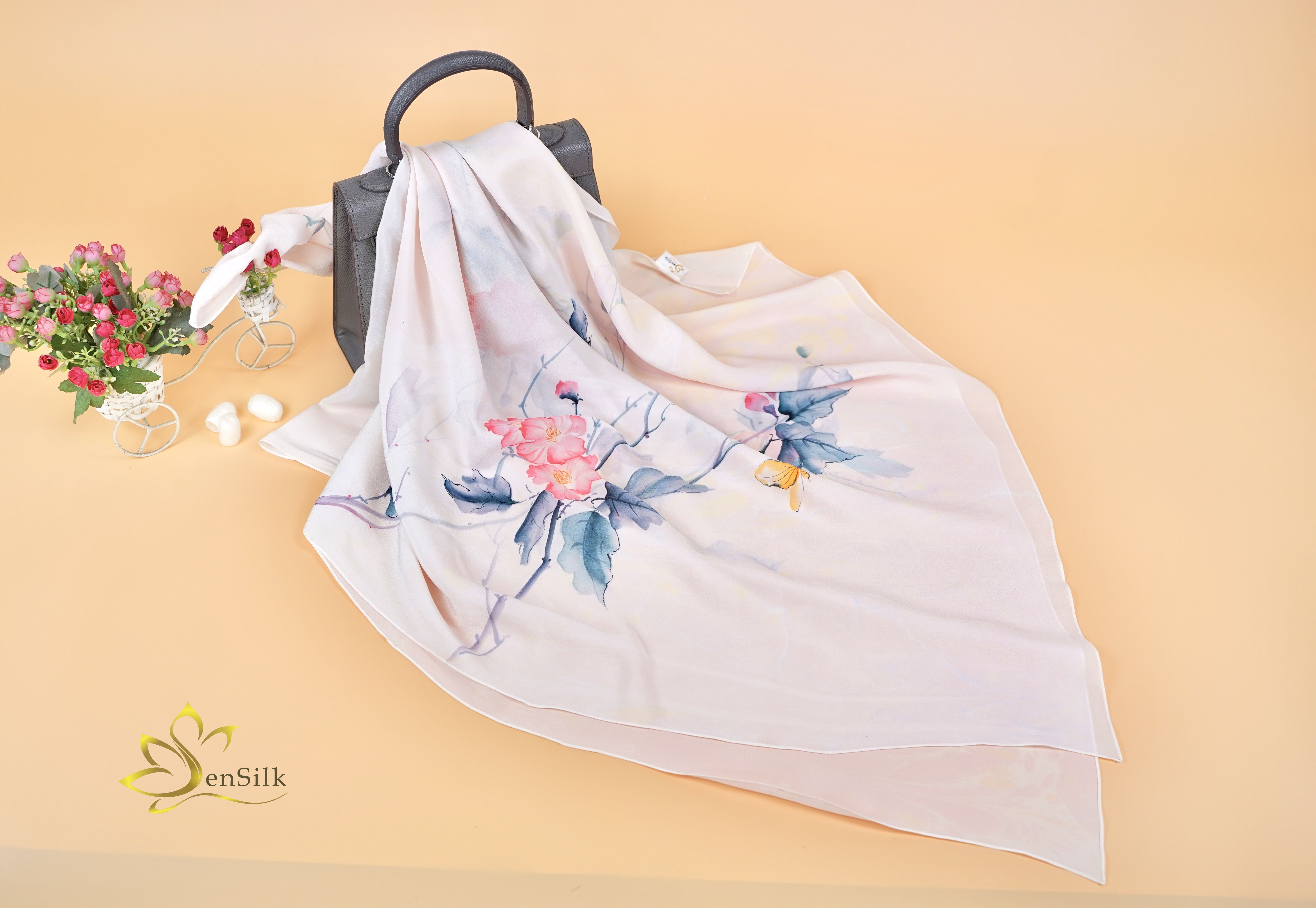 SenSilk – Lụa Tơ Tằm Thuần Việt kết hợp hài hoà giữa Lụa tơ tằm Bảo Lộc cao cấp với công nghệ in kỹ thuật số hiện đại tạo nên những chiếc khăn lụa in kỹ