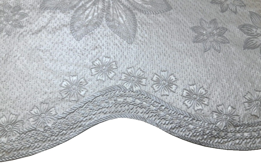 ✨Khăn Trải Bàn PAULEE - PWL 241 hoa văn nổi, ánh kim bạc, nền kem bạc, không thấm nước - 147cm x 230cm.