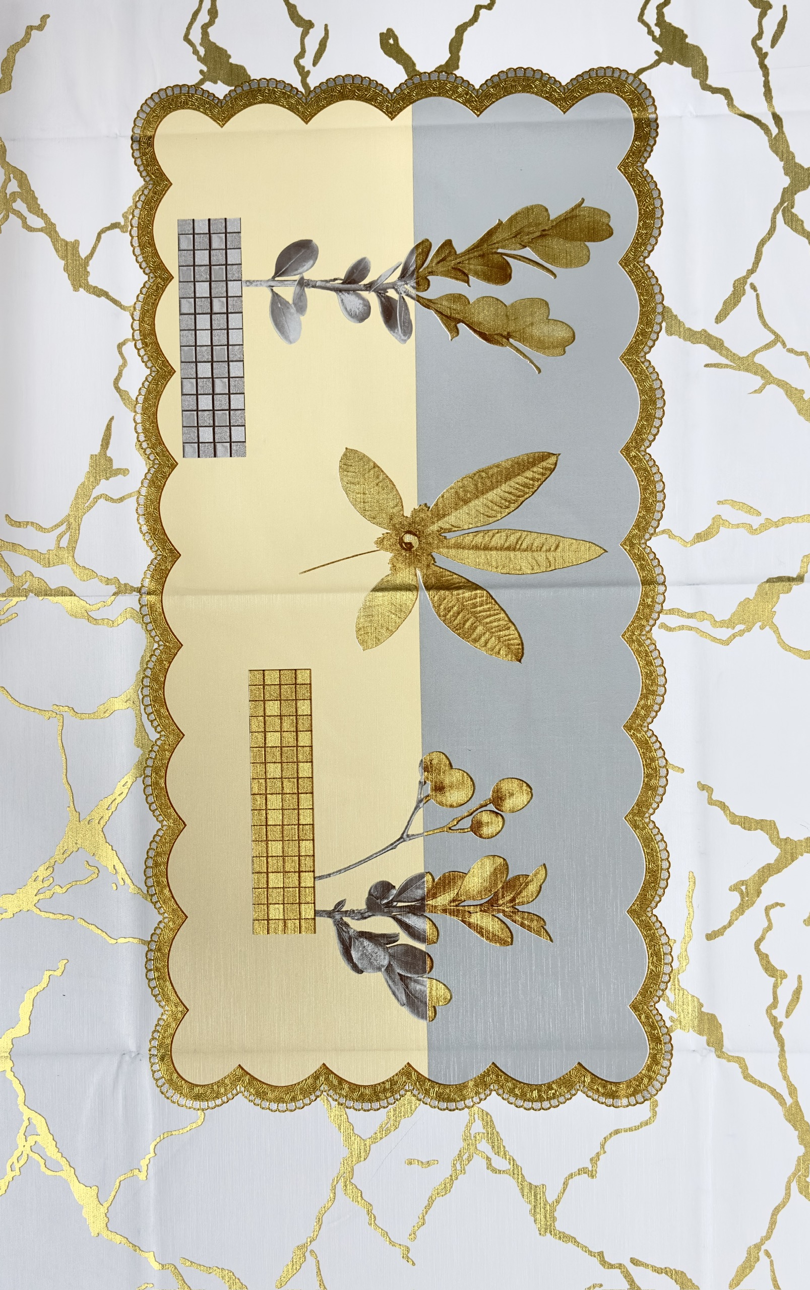 ✨Khăn trải bàn W.751 caro - nhũ vàng 90 x 150 cm, không thấm nước, dễ làm sạch