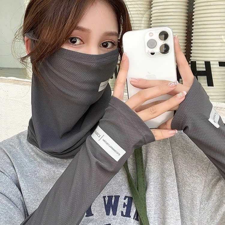 Khăn trùm vải thun lạnh Protect - Chất liệu : Vải thun lạnh - Size : Freesize thích hợp đa phần ai cũng vừa vặn. - Màu sắc: Đen, xám đậm, xám