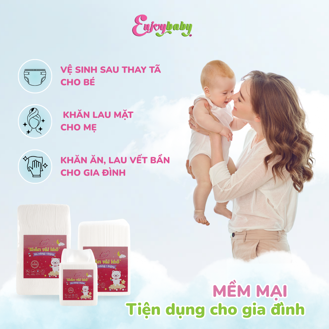 Khăn vải khô đa năng dành cho mẹ và bé ENJOY lau khô lau ướt Khăn khô Enjoy được sản xuất từ 100% vải không dệt cao cấp, mềm mại và lành tính kể cả