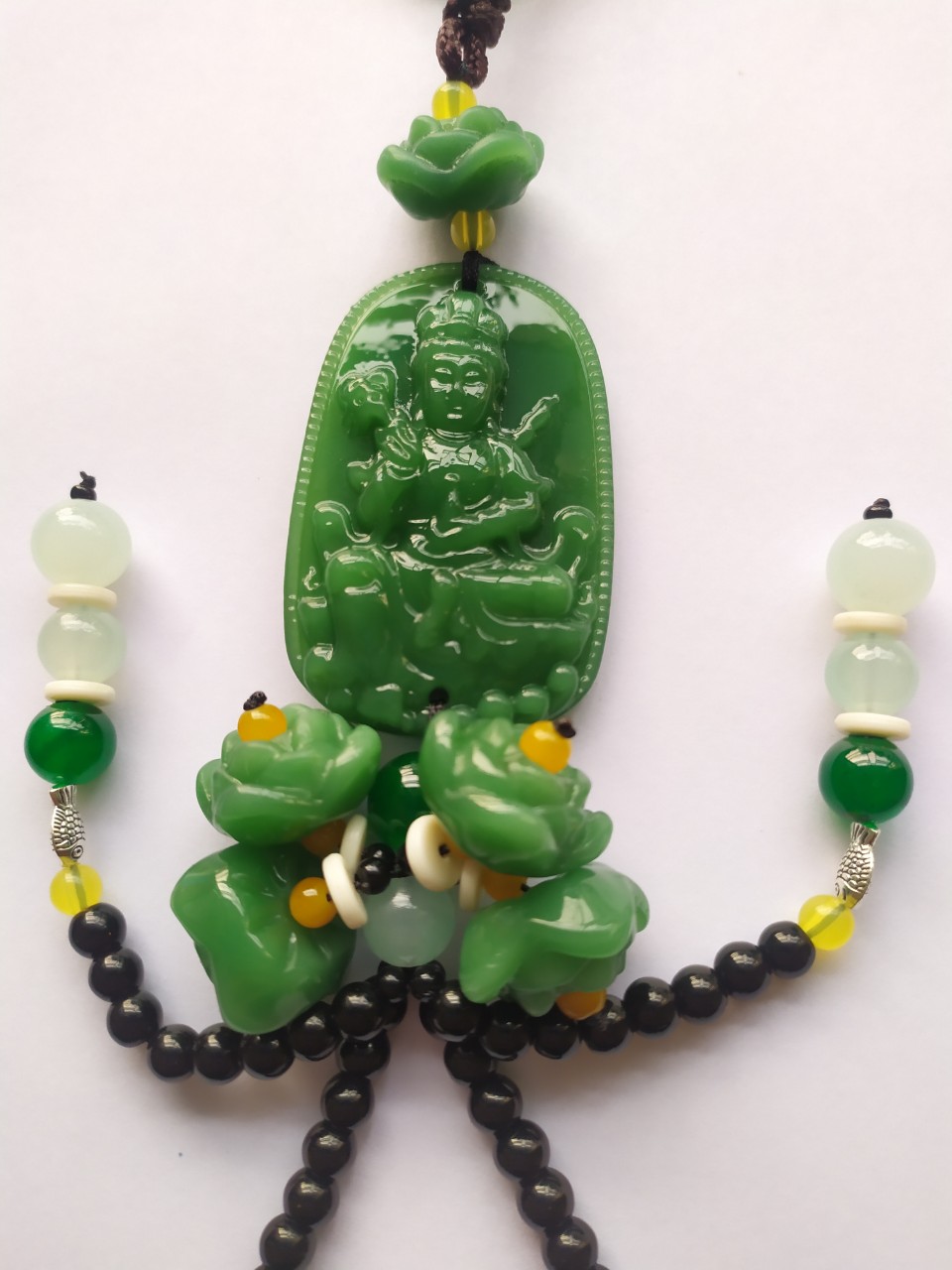 Điểm nổi bật: - Phụ kiện mang lại sự may mắn trong phong thủy - Tạo điểm nhấn cho không gian trong xe - Hình ảnh Phật Bà Phổ Hiền Bồ Tát được trang trí khéo léo tỉ mỉ , mang lại may mắn và thịnh vượng - Giúp không gian của buồng lái luôn có sinh lực và hỉ xả - Hoa sen biểu trưng cho tâm tính thanh tịnh - Mang đến may mắn, niềm vui và hạnh phúc - Giúp tài xế lái xe an toàn, chắc chắn hơn. Dây treo trang trí gương xe ô tô - Khánh đá trang trí xe hơi may mắn, bình an tượng phật ngự đài sen - Khánh treo xe may mắn là phụ kiện phong thủy được nhiều chủ xế sử dụng để trang trí bên trong chiếc xe của mình! - Xe ô tô là phương tiện di chuyển, nhưng nó cũng không khác gì ngôi nhà thứ hai của rất nhiều người. Nhà ở, chúng ta coi trọng phong thủy vậy tại sao chúng ta lại lơ đi những vật phẩm phong thủy cho xe ô tô để tạo thêm nhiều nhiều vượng khí tốt lành? Sử dụng khánh treo xe là một trong các cách giúp bạn vừa trang trí cho không gian xe thêm nổi bật vừa là vật phẩm phong thủy mang lại nhiều may mắn. Khánh treo xe may mắn là sản phẩm được nhiều chủ xe yêu thích sử dụng bởi tính thẩm mỹ và ý nghĩa mà nó mang lại.