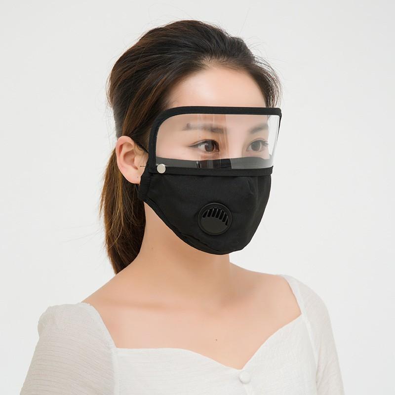 Khẩu trang vải có kính che mắt chống bọt bắn thích hợp cho người lớn và trẻ từ 10 tuổi trở lên- kèm 2 lót than hoạt tính
