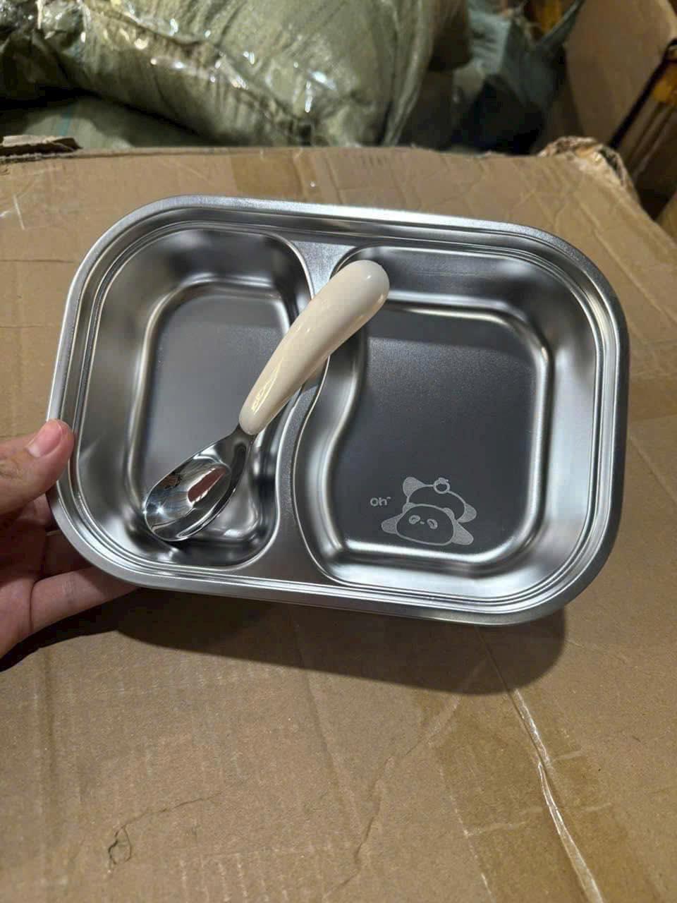58k thôi máy mẹ ơi.Khay ăn dặm cho bé hình thú dễ thương bộ đồ ăn mẫu giáo 3 ngăn inox 304