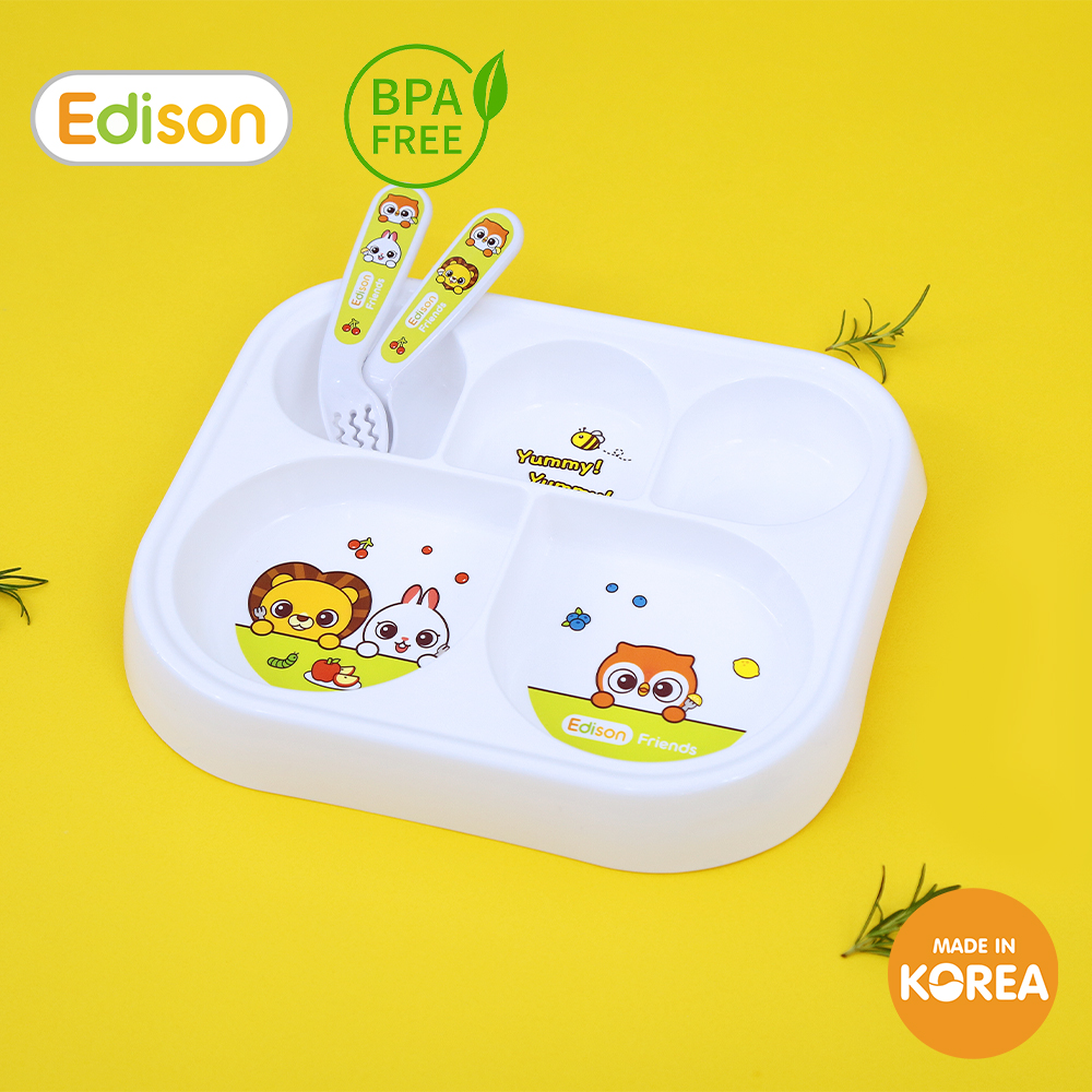 Khay ăn dặm chia ngăn Thương hiệu EDISON Hàn Quốc có đế chống trơn trượt cho bé là trợ thủ đắc lực trong những bữa ăn của trẻ