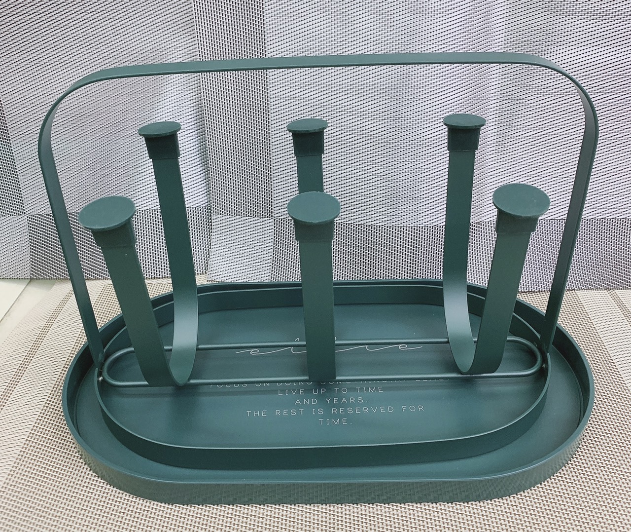 ✨KHAY ÚP LY CỐC KIM LOẠI MÀU XANH CỔ VỊT CÓ ĐĨA HỨNG NƯỚC - ANTH427