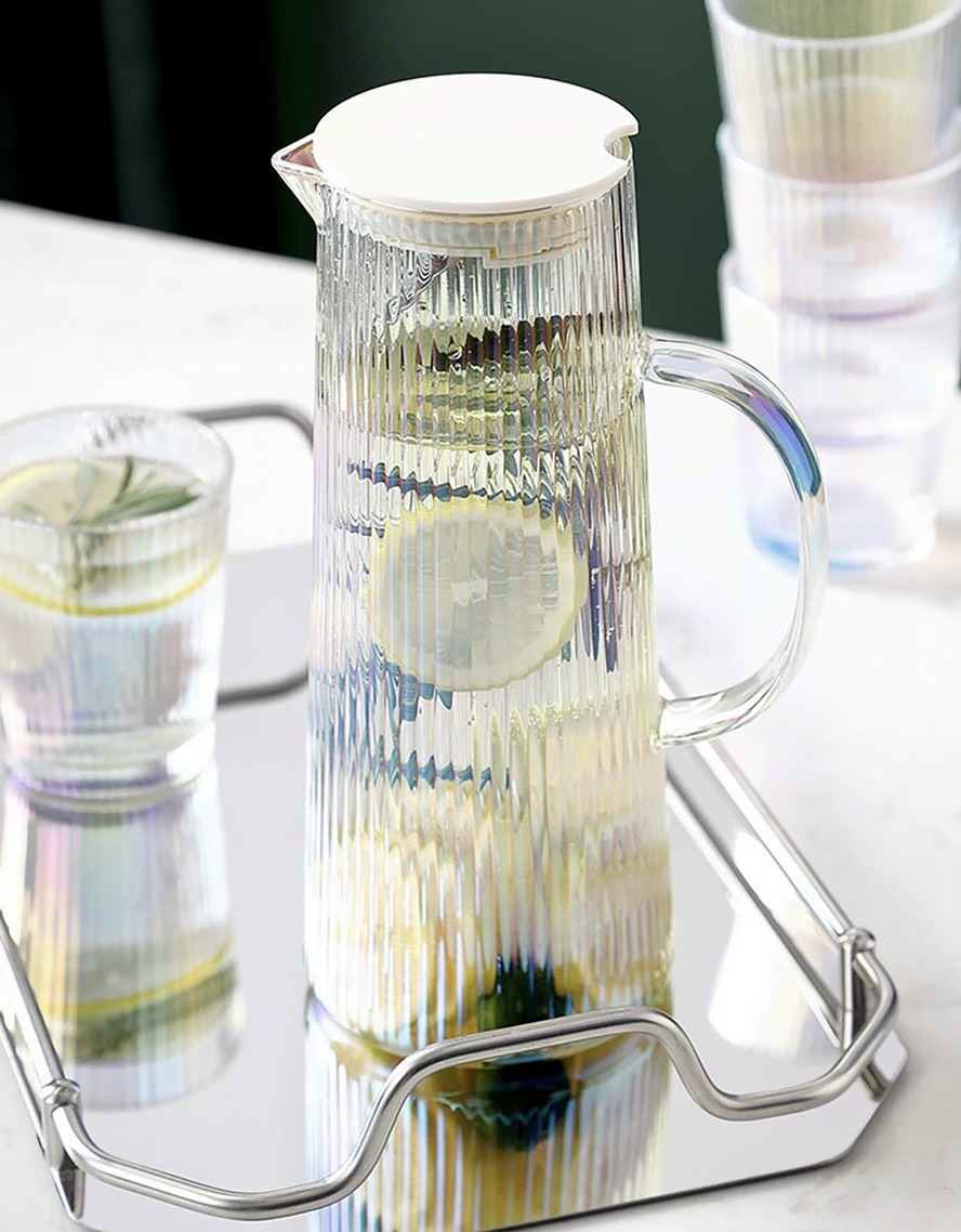 Chất liệu: thủy tinh Bộ sản phẩm gồm: 1 bình nước + 6 cốc + giá úp cốc Độ bền cao, chịu nhiệt tốt, hạn chế nứt vỡ do tác động của nhiệt. Chất liệu
