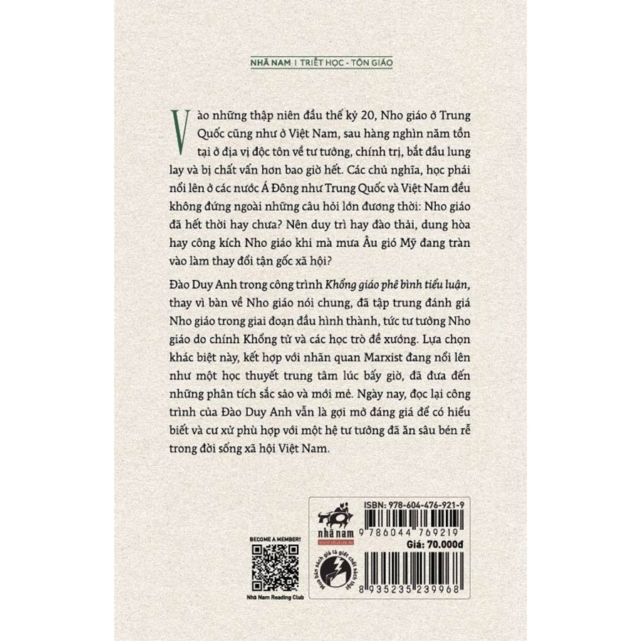 Nhằm đưa ra kiến giải riêng, Đào Duy Anh với công trình Khổng giáo phê bình tiểu luận thay vì bàn về Nho giáo nói chung, đã tập trung đánh giá Nho giáo trong giai đoạn đầu hình thành, tức tư tưởng Nho giáo do chính Khổng tử và các học trò đề xướng. Lựa chọn khác biệt này, kết hợp với nhãn quan Marxist đang nổi lên như một học thuyết trung tâm lúc bấy giờ, đã đưa đến những phân tích sắc sảo và mới mẻ. Ngày nay, đọc lại công trình của Đào Duy Anh vẫn là gợi mở đáng giá để có hiểu biết và cư xử phù hợp với một hệ tư tưởng đã ăn sâu bén rễ trong đời sống xã hội Việt Nam.