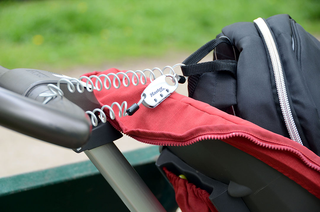 Thân khóa được bảo vệ bằng lớp nhựa ABS với nhiều màu sắc thời trang: xanh lá cây, xanh dương, vàng, cam Càng khóa được thiết kế bằng dây cáp bọc nhựa chống trầy xước