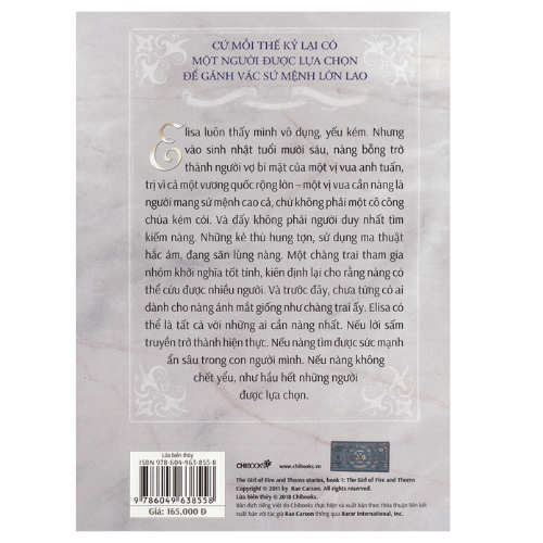 Elisa luôn thấy mình vô dụng, yếu kém. Nhưng vào sinh nhật tuổi mười sáu, nàng bỗng trở thành người vợ bí mật của một vị vua anh tuấn, trị vì cả một vương quốc rộng lớn – một vị vua cần nàng là người mang sứ mệnh cao cả, chứ không phải một cô công chúa kém cỏi. Và đấy không phải người duy nhất tìm kiếm nàng. Những kẻ thù hung tợn, sử dụng ma thuật hắc ám, đang săn lùng nàng. Một chàng trai tham gia nhóm khởi nghĩa tốt tính, kiên định lại cho rằng nàng có thể cứu được nhiều người. Và trước đây, chưa từng có ai dành cho nàng ánh mắt giống như chàng trai ấy. Elisa có thể là tất cả với những ai cần nàng nhất. Nếu lời sấm truyền trở thành hiện thực. Nếu nàng tìm được sức mạnh ẩn sâu trong con người mình. Nếu nàng không chết yểu, như hầu hết những người được lựa chọn.