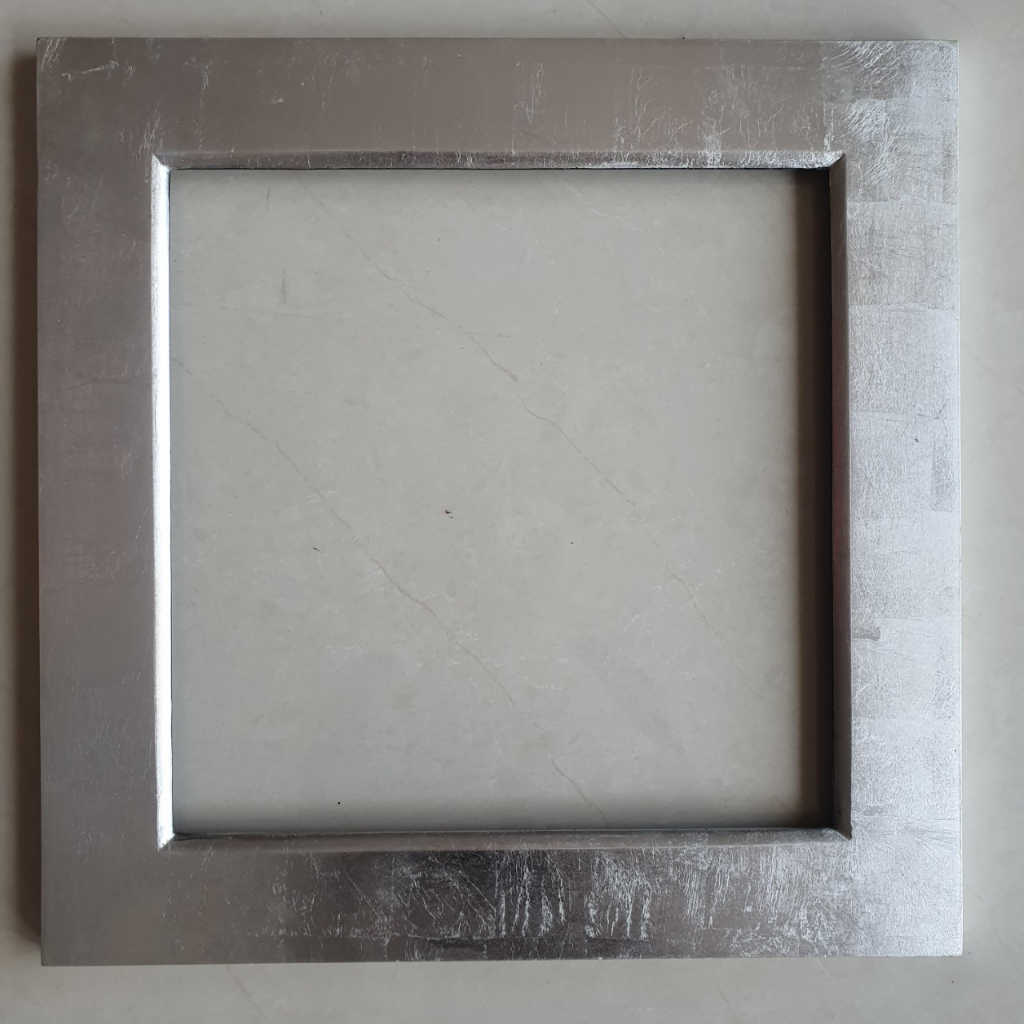 Khung gỗ sơn mài dát bạc vàng bóng đẹp, bền màu.