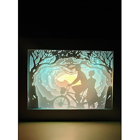Khung tranh đèn led 3D tùy chọn 3 mẫu Đèn tranh 3D được làm thủ công từ giấy Dùng làm quà lưu niệm , trang trí bàn học , phòng ngủ,