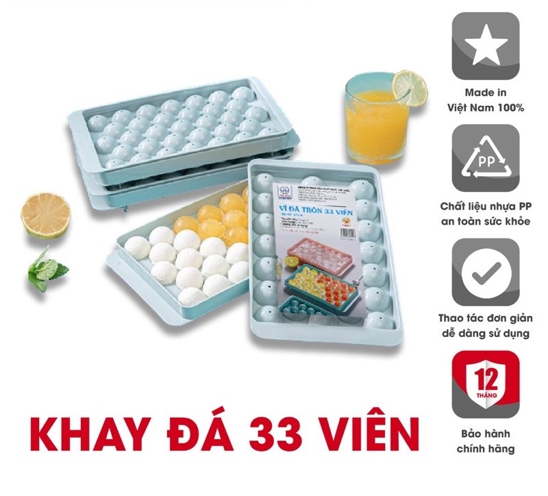 -Khay làm đá, thạch bi nhựa tròn 33 viên độc đáo , có nắp đậy tiện lợi -Xuất xứ : Việt Nam -Chất liệu : nhựa PP cao cấp an toàn cho sức khỏe -Khay