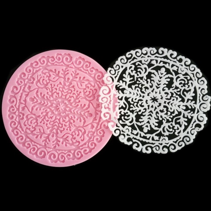 Mua tại TiktokKhuôn silicon làm bánh, rau câu, Fondant ren hoa tuyết - Loại 13 cm - Mã số 1139