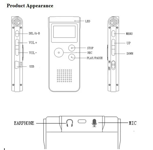 Sự miêu tả: Tên: Máy ghi âm Định dạng ghi: WAV/MP3; Định dạng phát nhạc: WAV/MP3/OGG và các định dạng âm thanh khác; Thời gian ghi pin: khoảng 20 giờ; Pin: pin lithium 210 mAh;