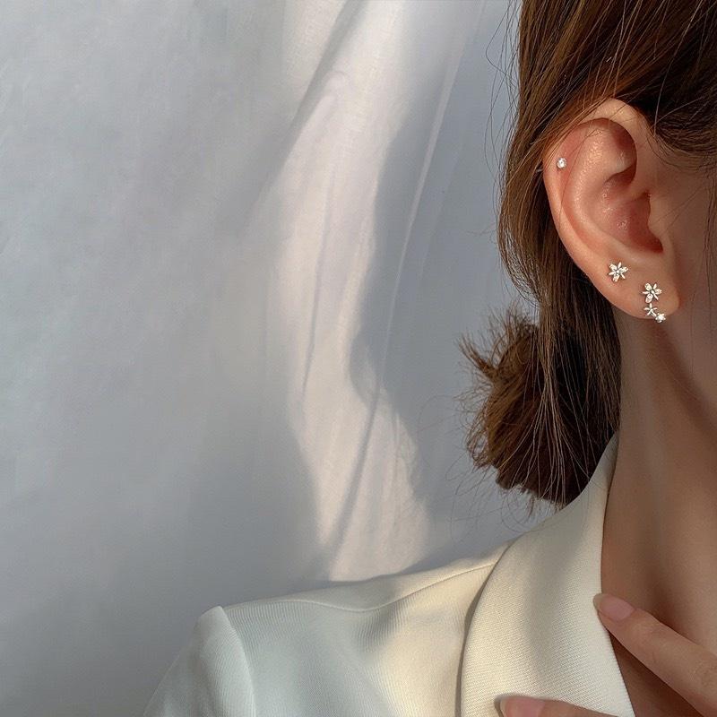 Khuyên tai bạc 925 nụ cọc cạch 1 bên 3 hoa 1 bên 1 hoa xinh xắn độc lạ Dế Bạc - K5840