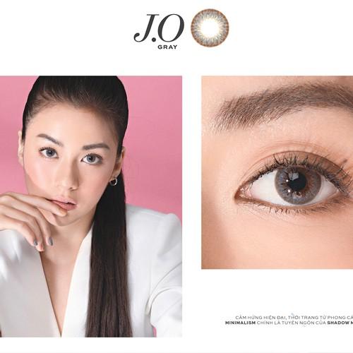J.O Grey - tone màu xám pha đen lên mắt có ánh xanh ngọc vân chấm vàng nhẹ. Lens giãn tròng lên mắt tạo hiệu ứng to tròn phù hợp với phong cách makeup nhẹ nhàng đi chơi tiệc nhẹ.