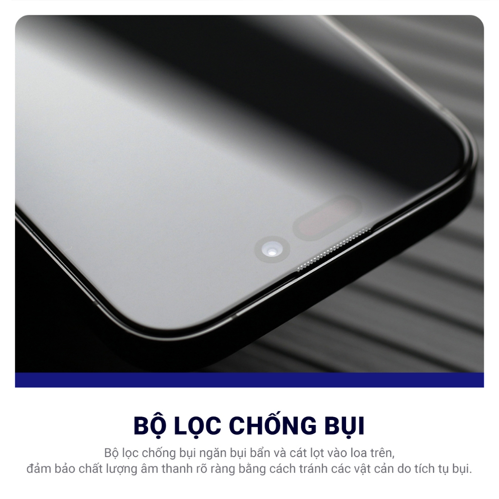 Thiết kế viền đen giúp độ nổi khối hình ảnh rõ ràng hơn, tạo hiệu ứng chiều sâu cho màn hình, chống bụi tốt hơn các loại kính bảo vệ thông thường khác. Kính cường